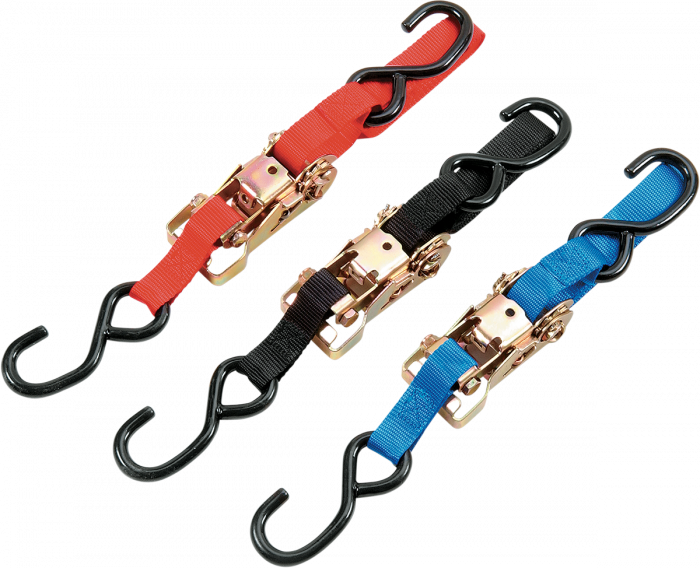 1 (25 mm), Chinga de nailon, 6 L (183 cm), evaluata la puterea de 1.500 lb. (680 kg) Clichet pentru o manevrare mai usoara Carlige de 3 8 (10 mm) acoperite cu vinil, cu o greutate nominala de 544 kg 400 lb. (181 kg) Disponibil in negru, rosu...